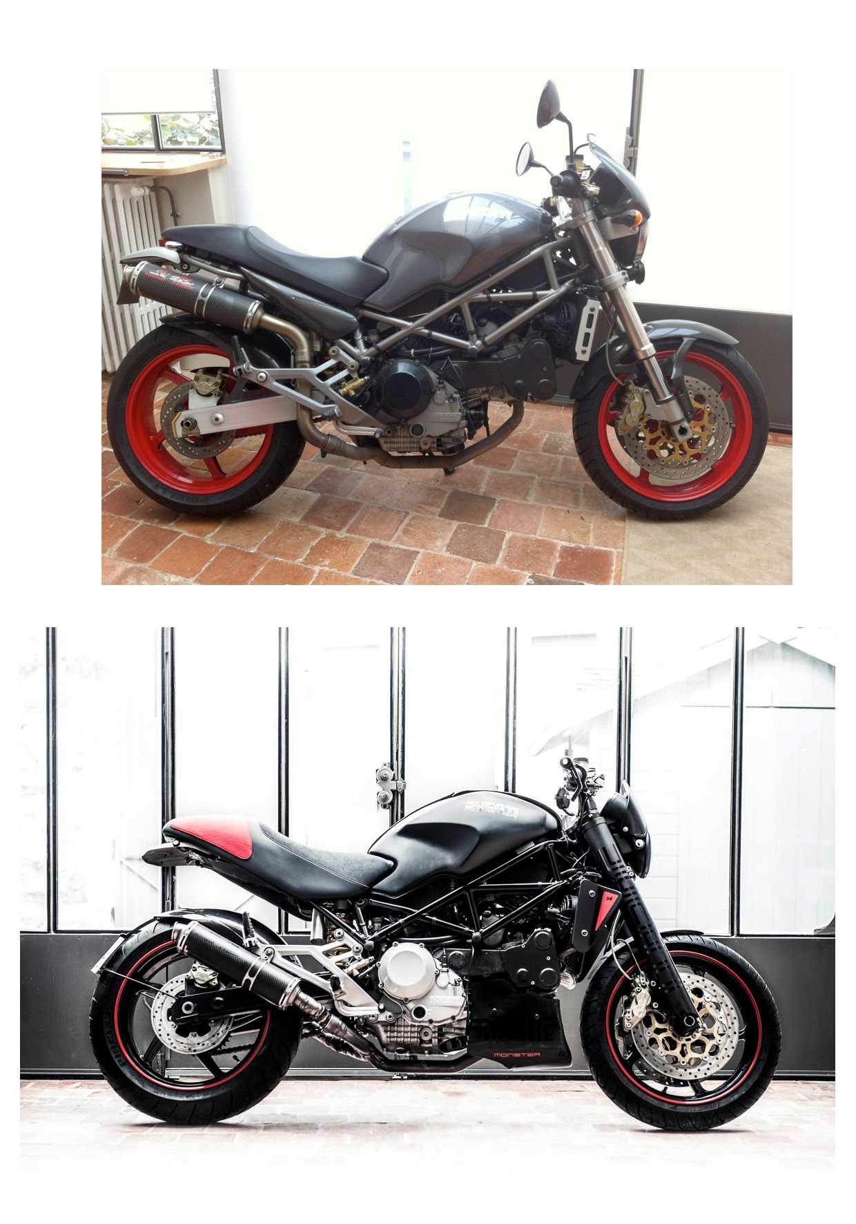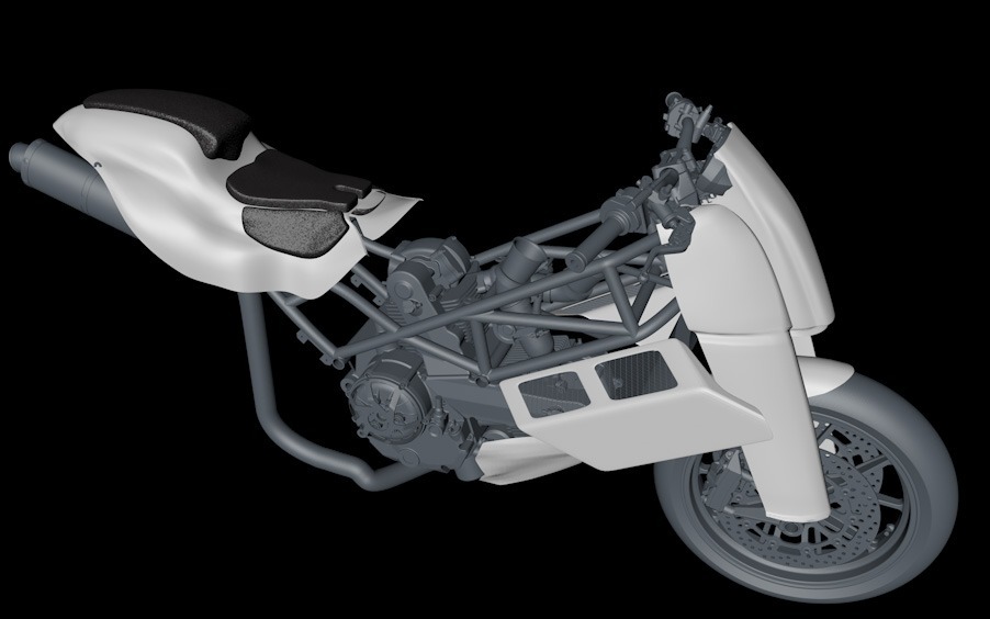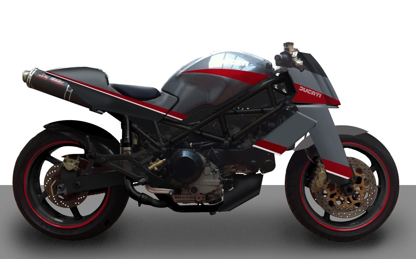 Certains amateurs de moto ne se contentent pas du véhicule produit industriellement dont tous les modèles se ressemblent et cherchent à travers des transformations esthétiques et mécaniques à avoir un produit unique fait “sur-mesures”. C’est dans ce cadre que j’interviens pour l’atelier Moto(RE)cycle : études d’après croquis, esquisses et photos-montages pour obtenir l’accord du client, puis chiffrage et réalisation.